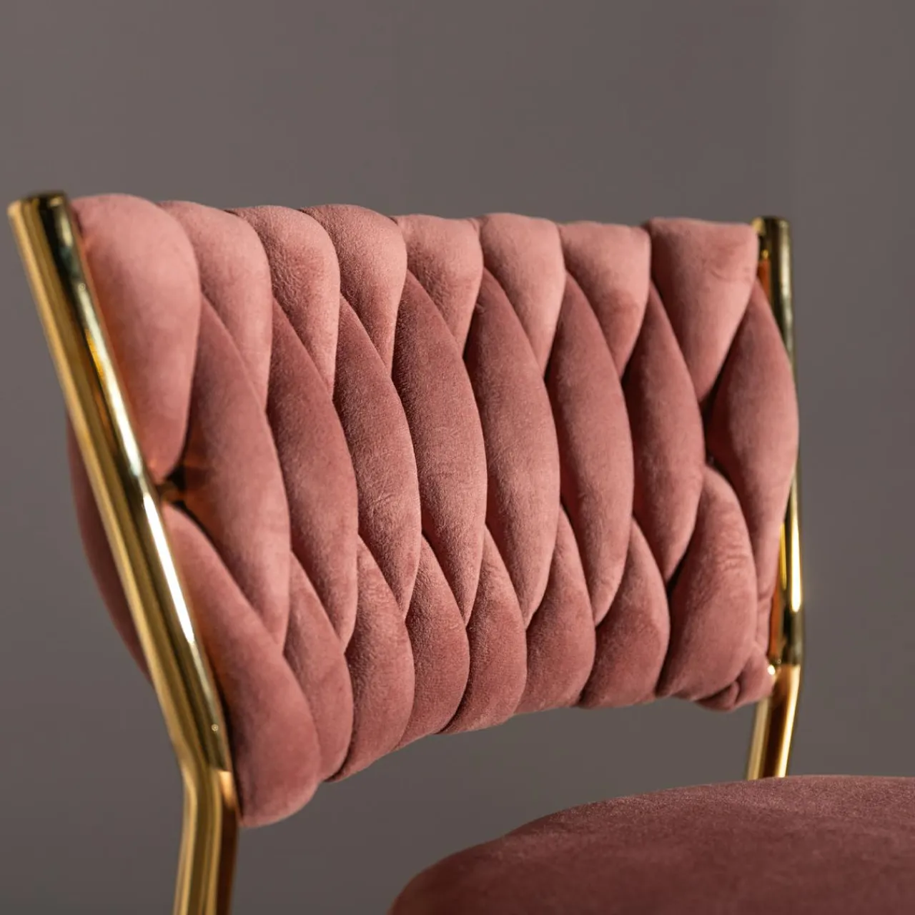 Ozdobna plecionka na oparciu będzie mocnym, ciekawym akcentem we wnętrzu. W połączeniu ze złotymi metalowymi nogami stworzy kompozycję, która będzie wizytówką Twojego domu.