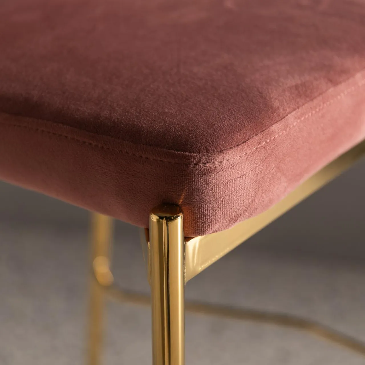- Krzesło zostało obite miłym w dotyku welurem w kolorze kobiecego różu, który dodaje całości romantycznego charakteru.