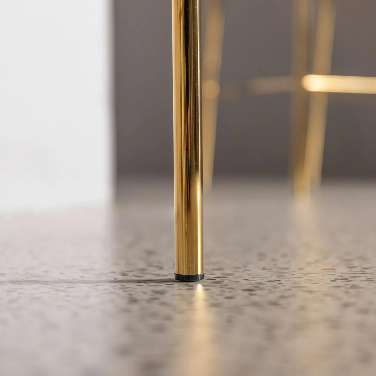 Krzesło barowe LIANA będzie dobrze wyglądać przy oświetlonych wyspach kuchennych i błyszczących blatach blatów i stołów w stylu glamour