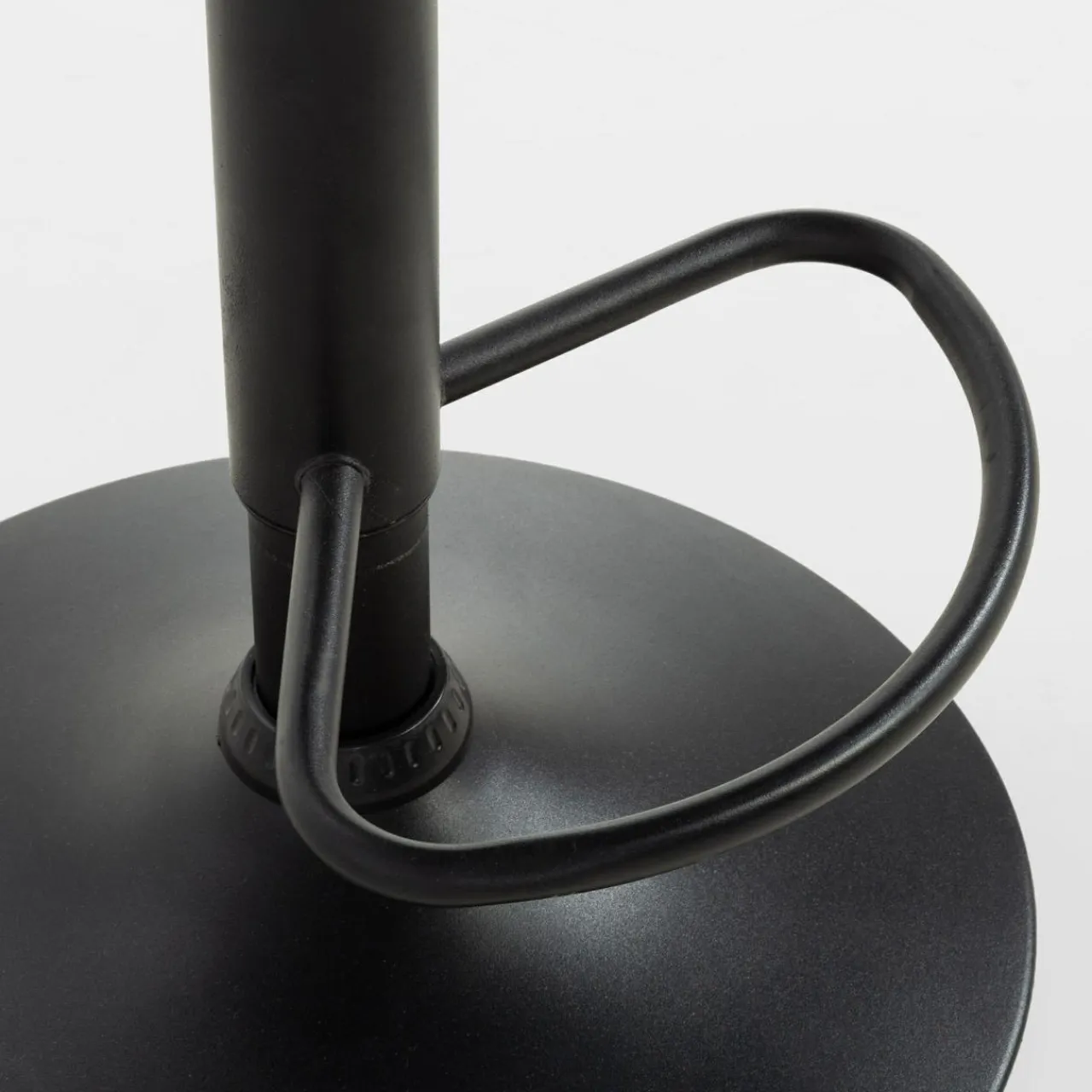 - Siedzisko podtrzymuje stabilna, metalowa podstawa w czarnym kolorze z matowym wykończeniem.