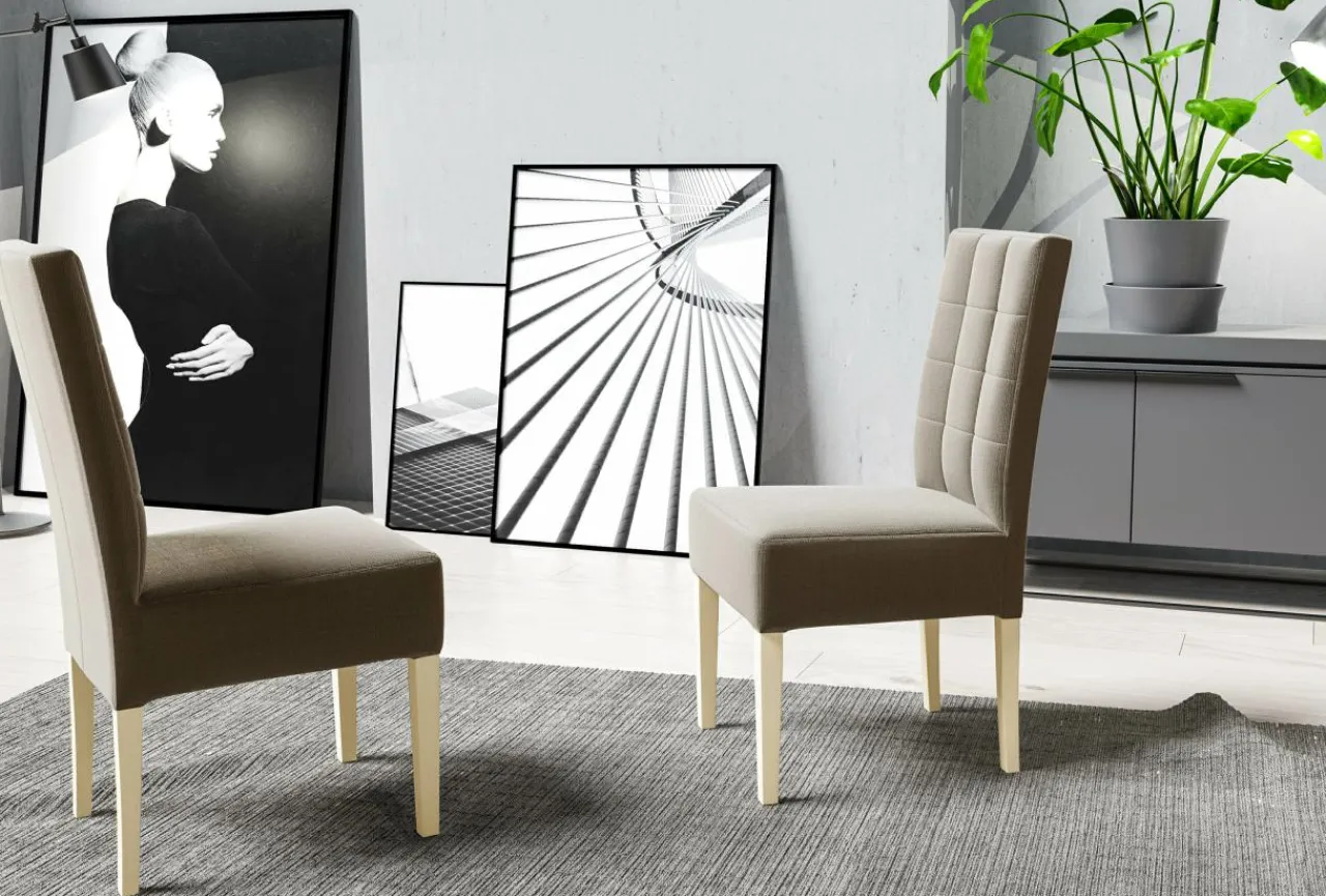 Doskonale prezentuje się w przestronnych wnętrzach jadalni oraz salonu. Dzięki nogom wykonanym z drewna bukowego wnosi naturalny wpływ w wystrój wnętrza. Tapicerowane tkaniną w ciepłym, szarym odcieniu może też być doskonałym dodatkiem dla wypełnionych światłem wnętrz skandynawskich.