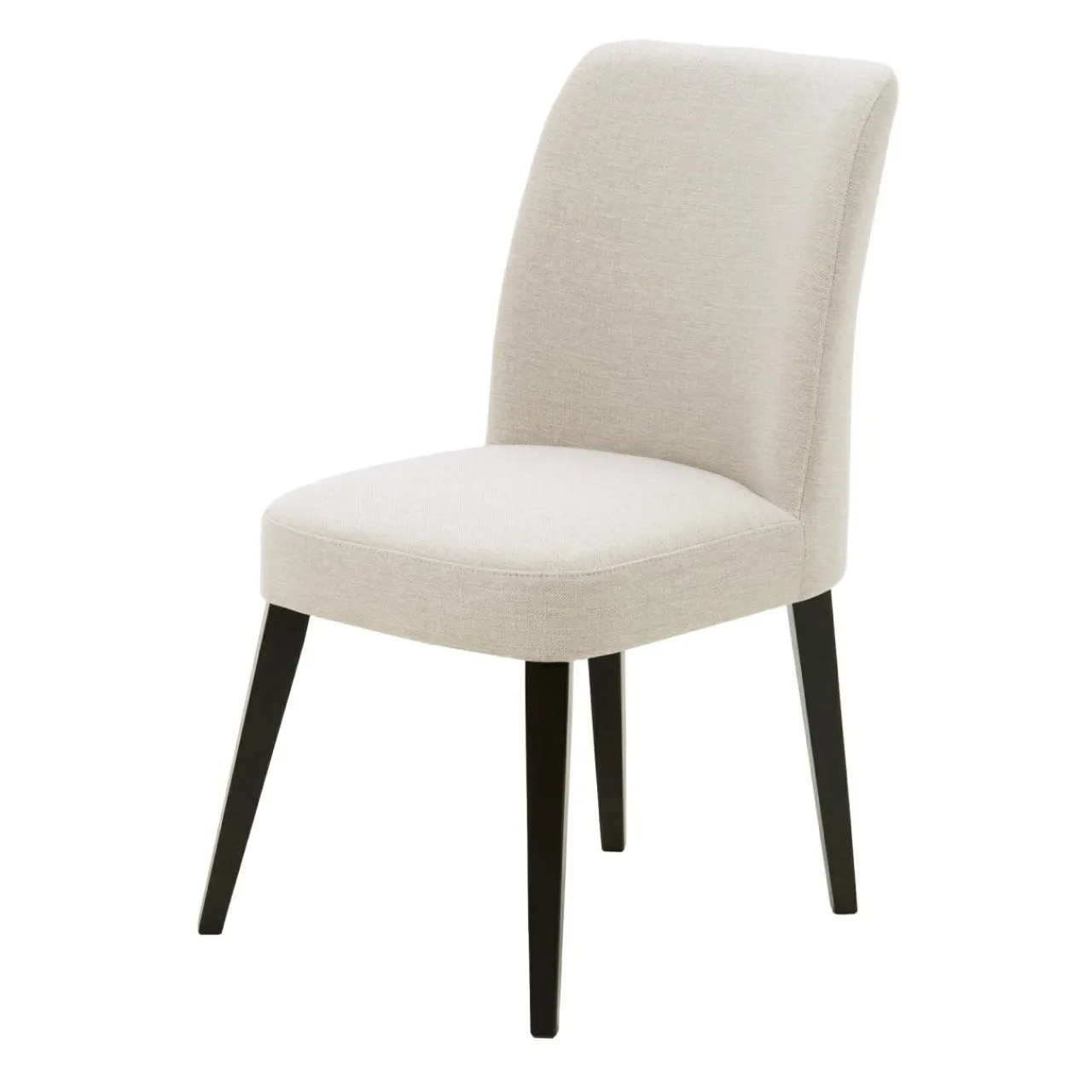 Krzesło HOLIN wykończone jest w jasnej, beżowej tkaninie. Wyraźna plecionka jest przyjemna pod palcami. Mimo wyraźnych pleceń materiał jest delikatny i nie drażni skóry podczas użytkowania.