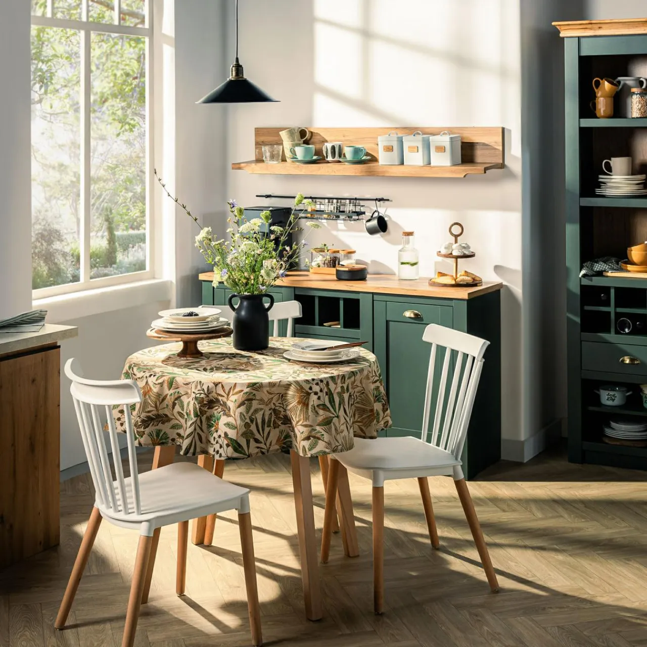 - Charakterystyczne, zwężające się u dołu nogi oraz szczeble tworzące oparcie zakończone wygiętą poprzeczką – elementy te tworzą smukły i lekki, uniwersalny mebel pełen prostoty.