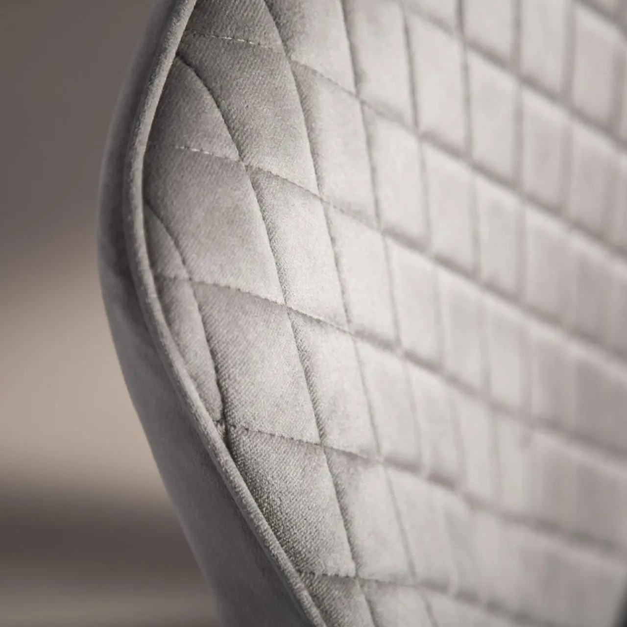 - Geometryczne przeszycia w welurowej tapicerce dodadzą wnętrzu elegancji.