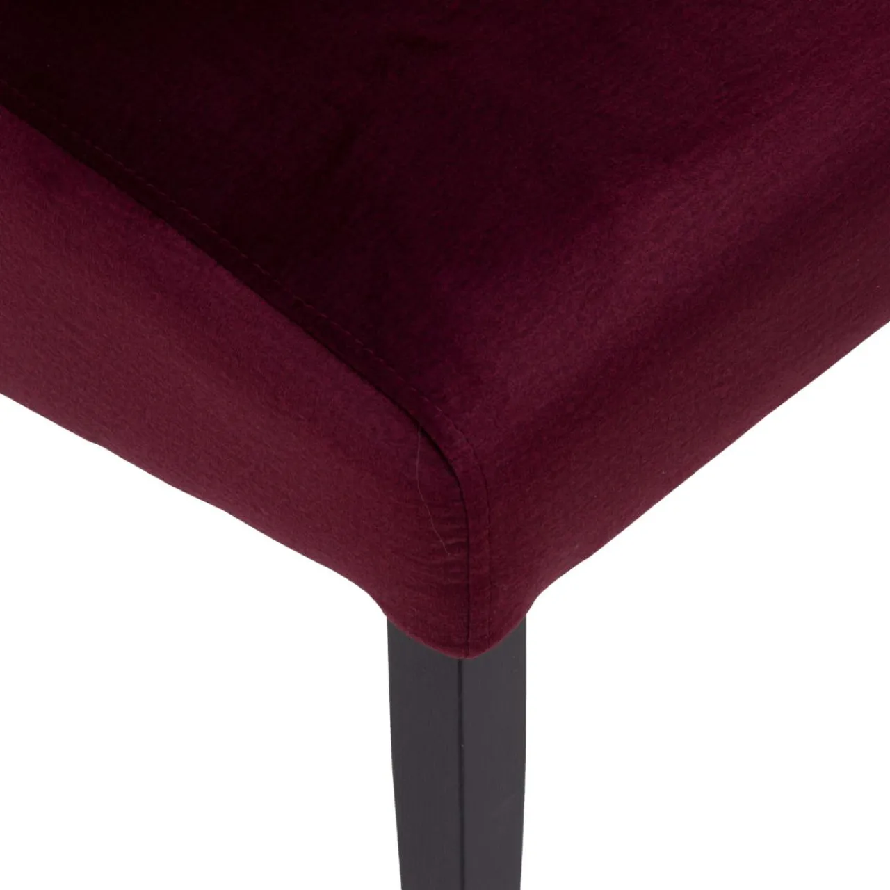 Stelaż i nogi krzesła wykonano z drewna w czarnym kolorze. Nadało im to matową strukturę.