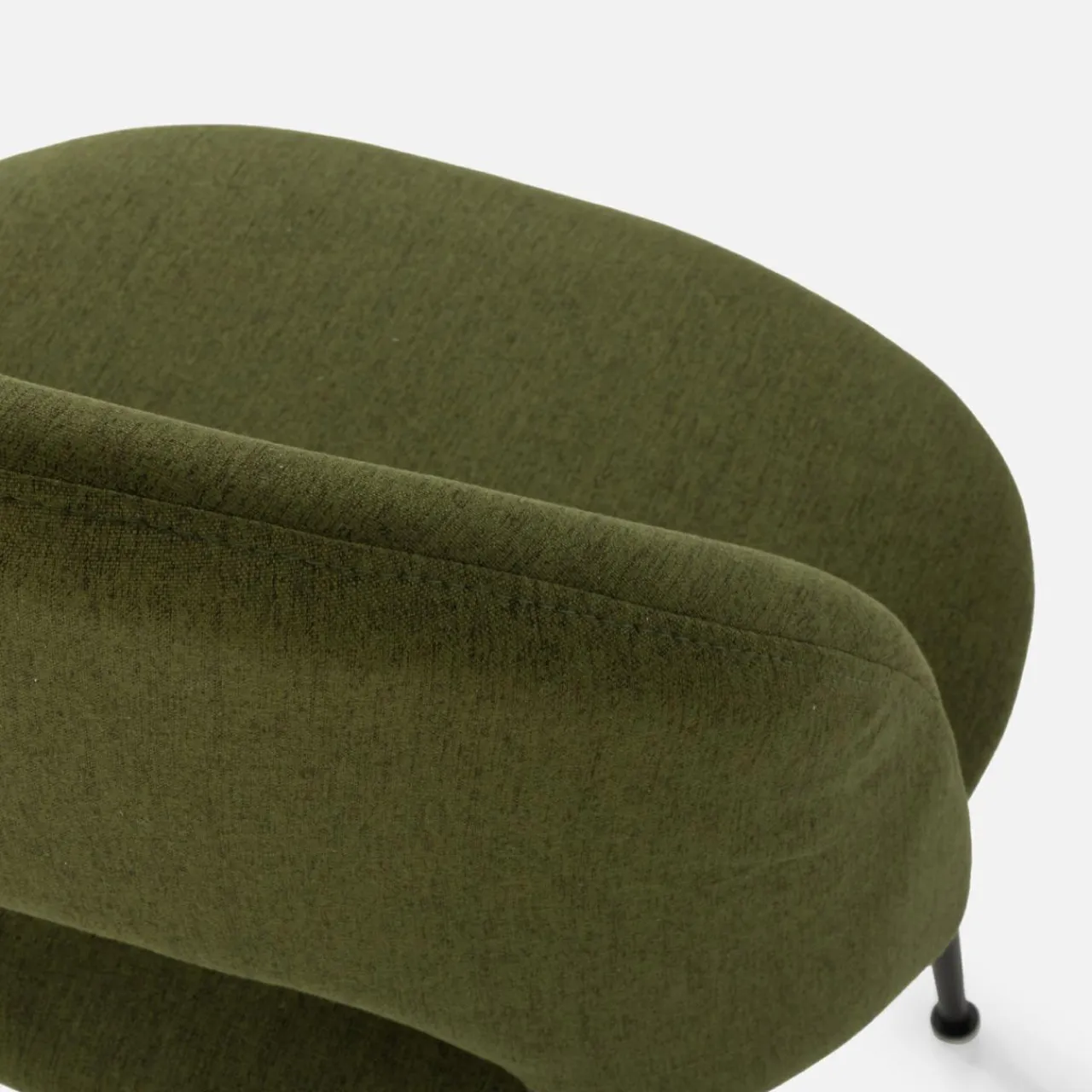 - Zaokrąglony kształt krzesła wpasuje się w aranżację z motywami organicznymi.