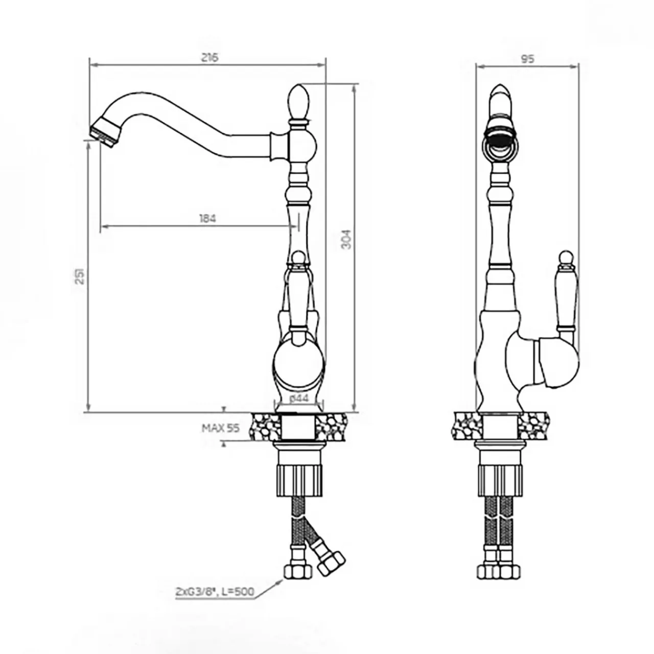 - Wykonanie z mosiądzu – zapewnia trwałość i odporność na korozję.