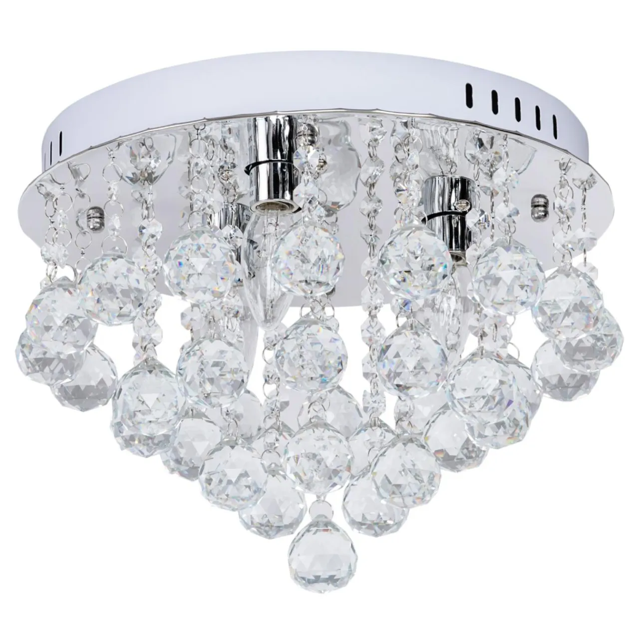 Lampa doskonale prezentuje się w pomieszczeniach zaaranżowanych w jasnej tonacji kolorystycznej oraz doskonale współgra ze szklanymi i chromowanymi meblami i dodatkami dekoracyjnymi. Dzięki oryginalnemu wykończeniu przyciąga wzrok, zapalona rozjaśnia pomieszczenie oraz uatrakcyjnia jego wygląd tworząc na ścianach świetlne refleksy.