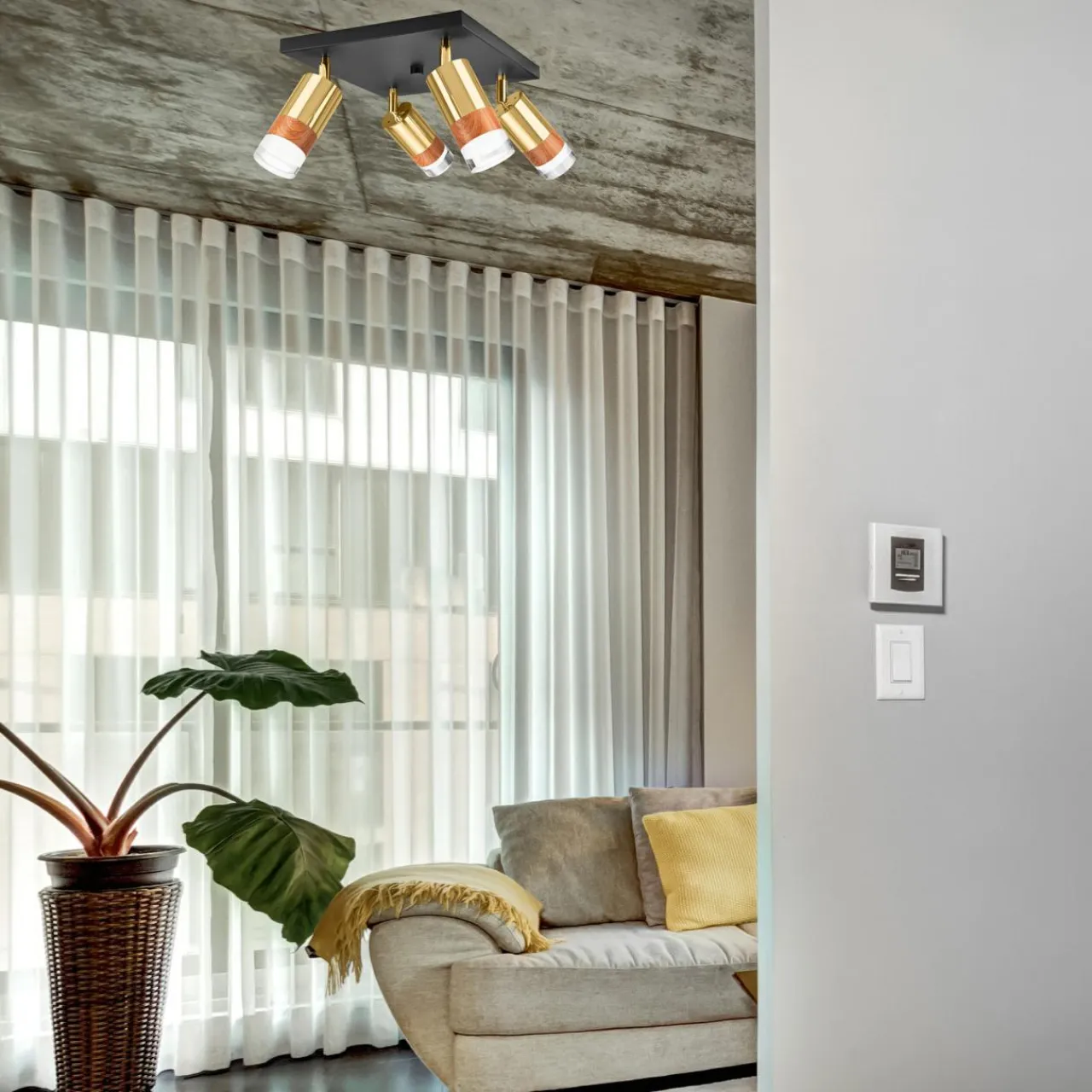 - Mocowana na suficie lampa z 4 regulowanymi reflektorkami pozwoli Ci doświetlić wnętrze jadalni lub salonu.
