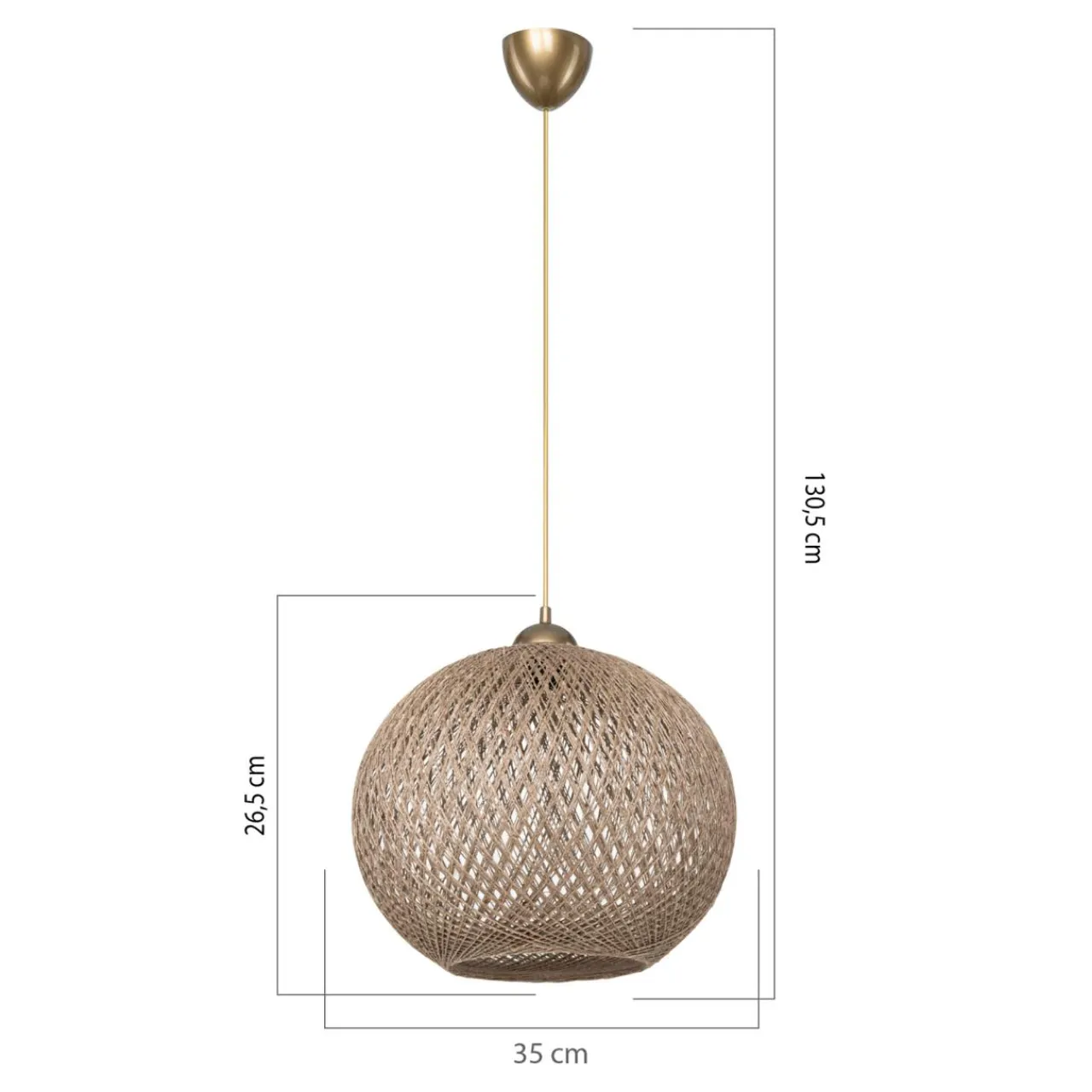 W tym modelu lampy wiszącej YUMAK możesz dopasować wysokość zawieszenia. Jego zakres wynosi od 70 do 130,5 cm.
