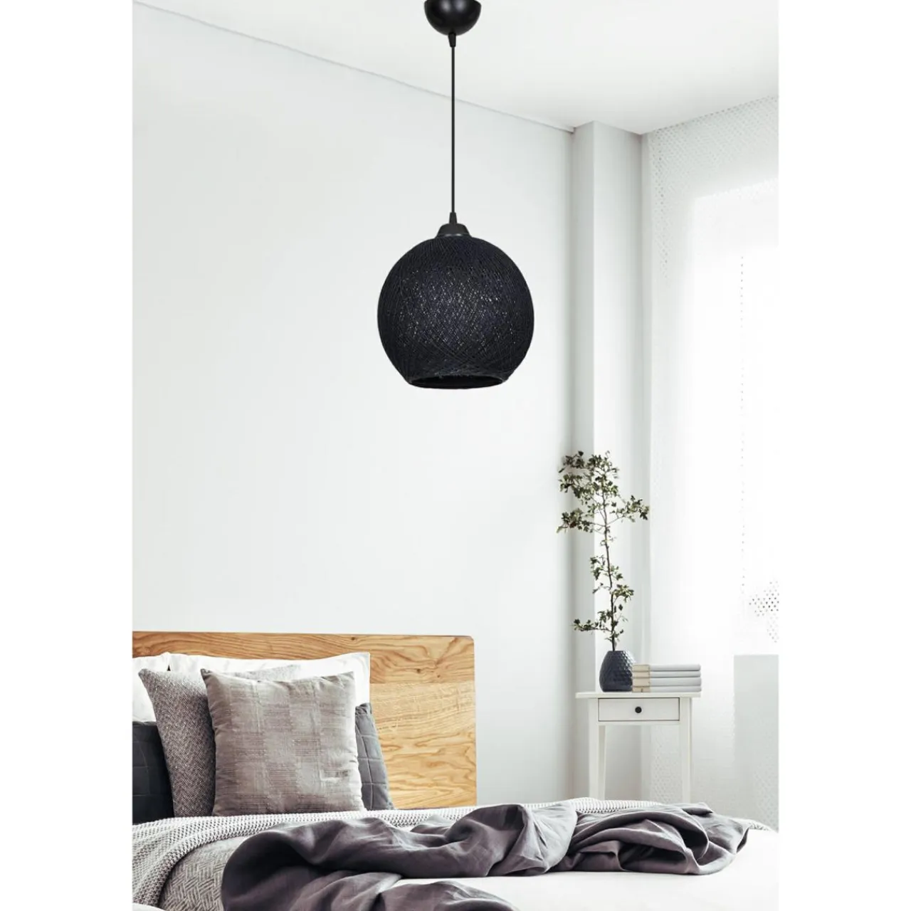 Zawieś lampę wiszącą YUMAK w salonie lub sypialni i poczuj spokój oraz relaks płynący z naturalnego piękna. Matowa czerń plecionego abażuru wzbogaci wnętrze o element dekoracyjny.