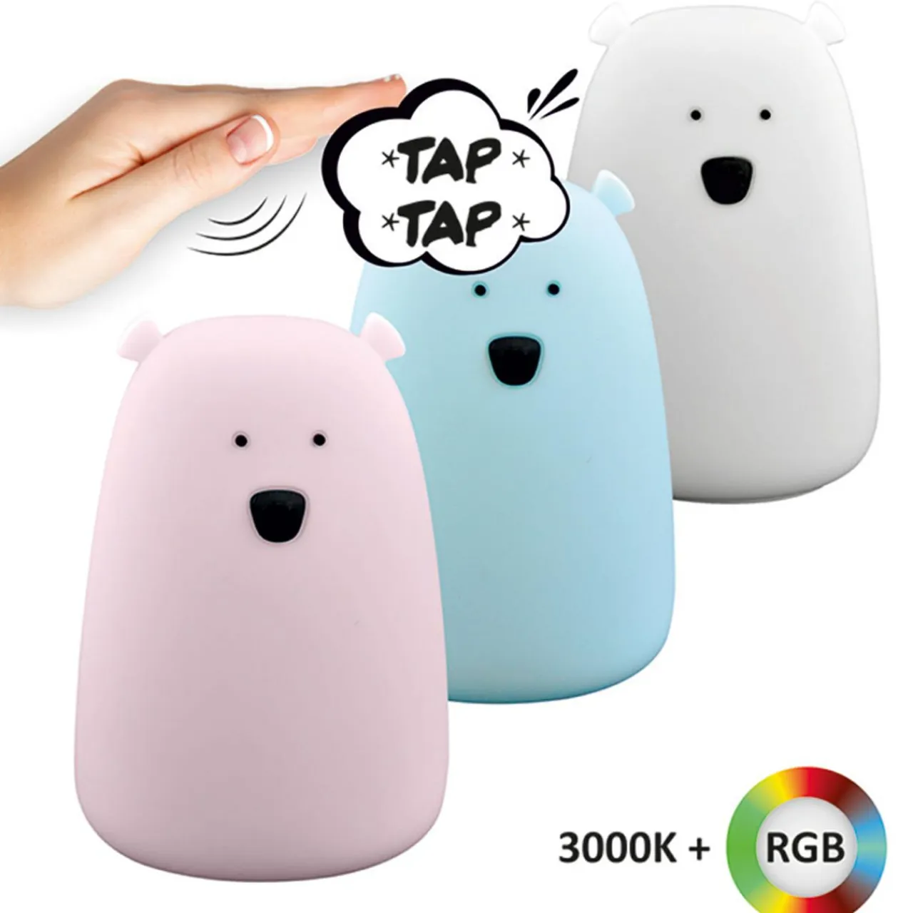 Zastanawiasz się jak włączyć lampkę? Nic prostszego. Kiedy lekko uderzy się misia od góry zaczyna płynnie zmieniać kolory. Następnym uderzeniem można kolor zatrzymać.
