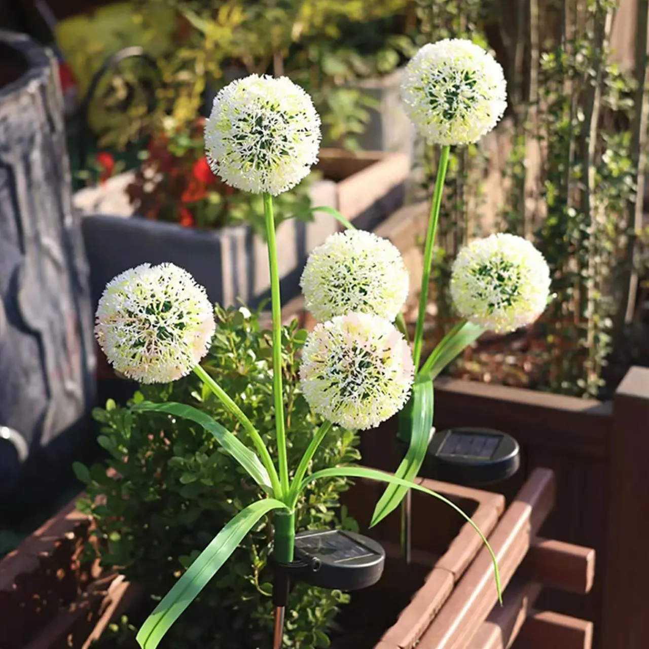 Dekoracja solarna LED osadzona wśród krzewów i kwiatów doda magii do letniego wieczoru i sprawi, że ogród będzie prezentował się wyjątkowo.