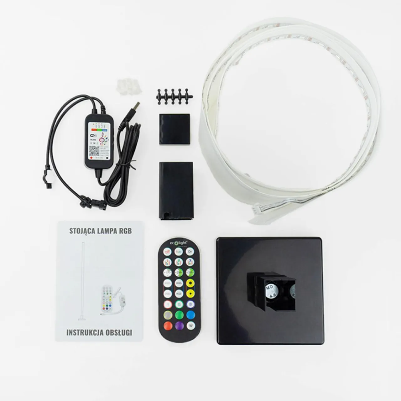 - Lampa podłogowa TUYA nie zajmuje wiele miejsca. Przy wysokości 150 cm posiada podstawę o wymiarach 12,5×12,5 cm.