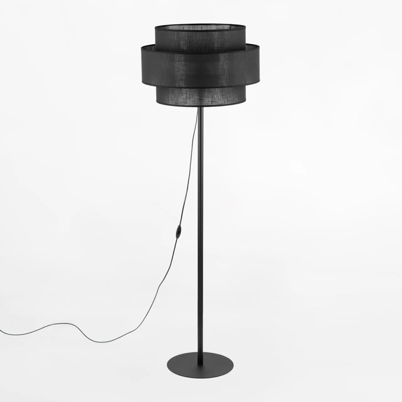 - Czarna kolorystyka tkaniny abażuru podkreśla surowość, która zestawiona z jasnymi wnętrzami pozwala uzyskać efekt kontrastu, który świetnie uwypukli nowoczesny styl w wystroju wnętrza.