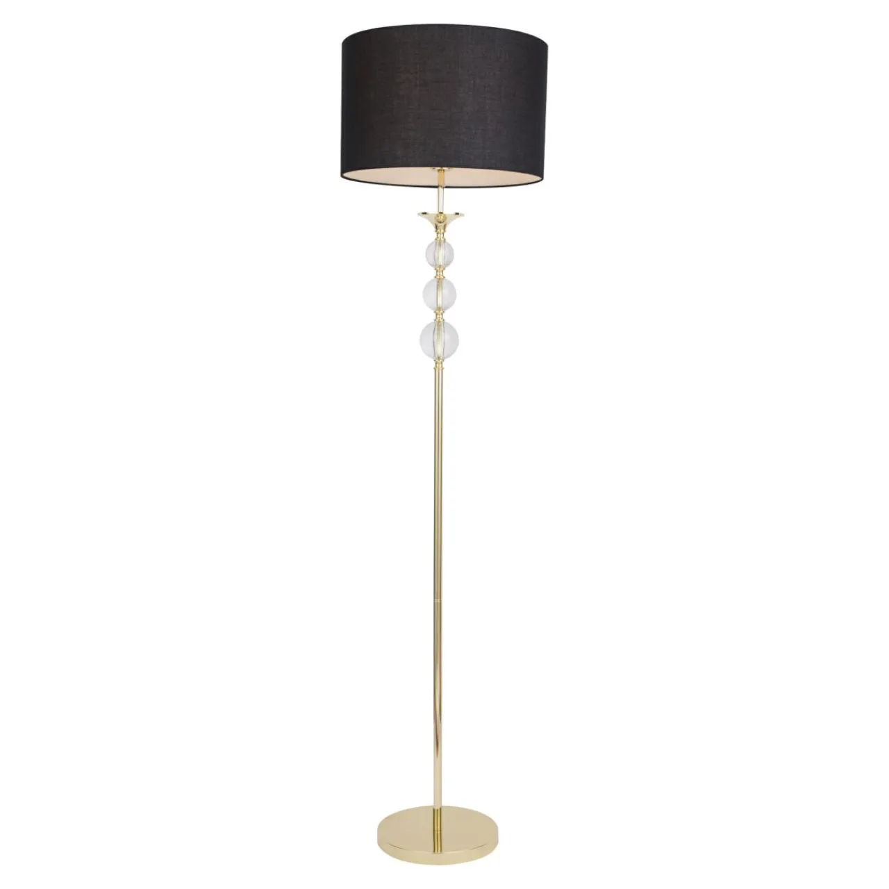 Podstawa lampy REA została wykonana z metalu i ozdobiona wykończeniem w kolorze złota. Trzy szklane kule dodatkowo upiększają smukłą nóżkę lampy. Pod względem stylistycznym nadają jej cech glamour oraz komponują się wizualnie ze złotym wykończeniem.