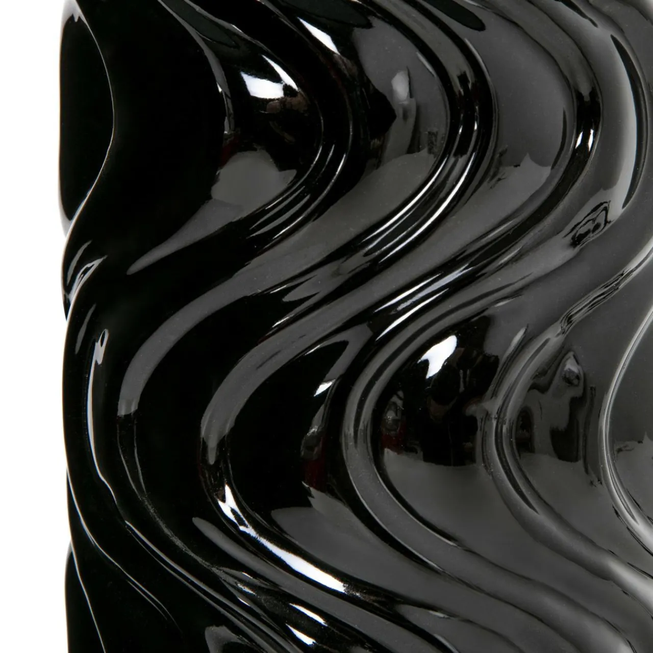 Intrygujący, falisty wzór wyobrażony na podstawie jest nie narzucający się i delikatny. Jego uniwersalność oraz oszczędna estetyka trapezowego klosza pasują do nowoczesnych i klasycznych aranżacji.