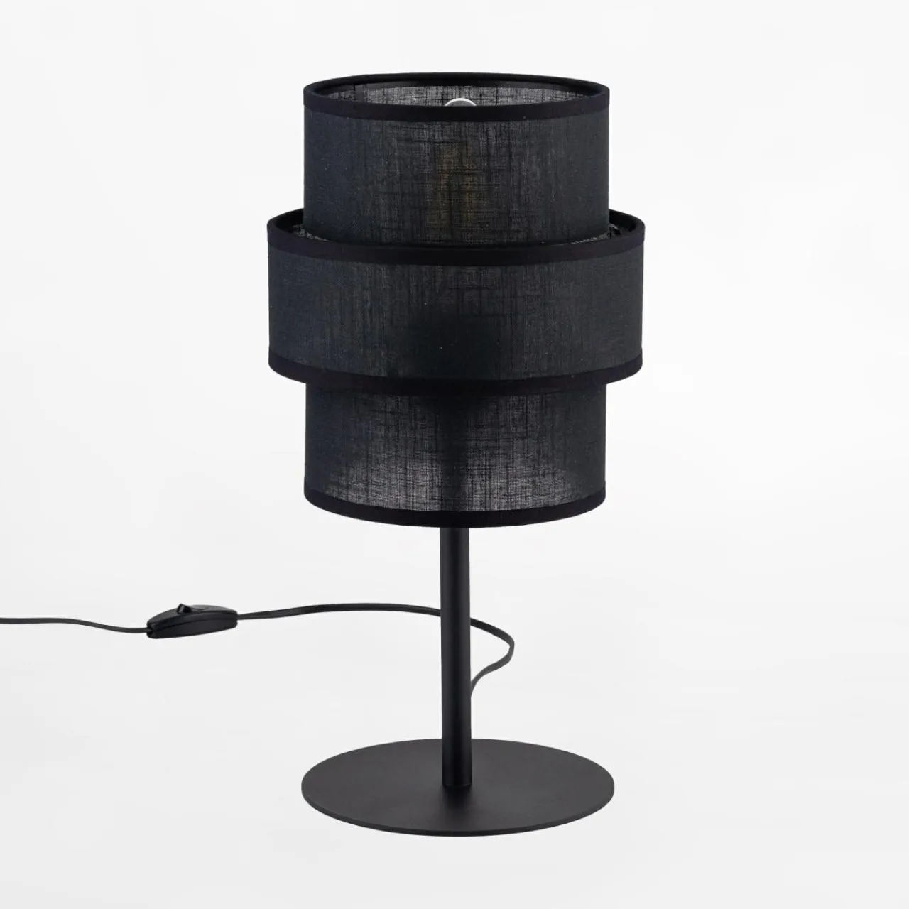 - Czarna kolorystyka tkaniny abażuru podkreśla surowość, która zestawiona z jasnymi wnętrzami pozwala uzyskać efekt kontrastu, który świetnie uwypukli nowoczesny styl w wystroju wnętrza.