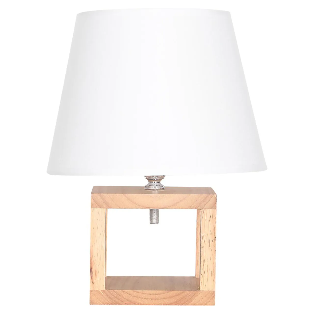 - Abażur ma klasyczny kształt rombu, opinająca go tkanina jest biała.