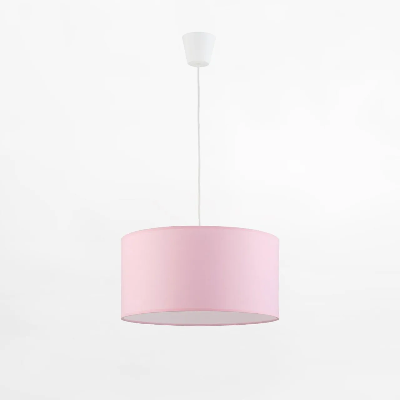 Okrągły abażur lampy RONDO KIDS w różowym kolorze będzie pasował do bieli, szarości oraz jasnych odcieni drewna. Kolor i estetyka lampy doda również przestrzeni.