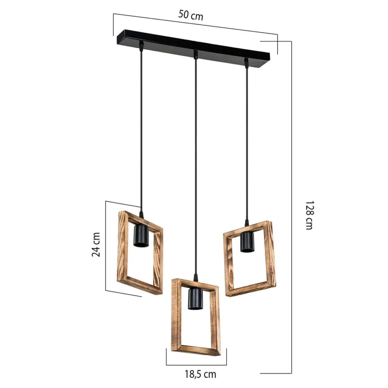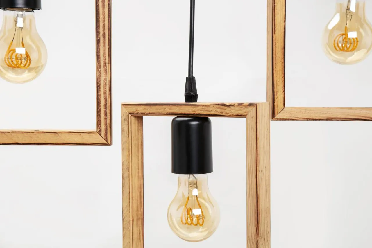 Na listwie, montowanej pod sufitem zostały zawieszone 3 ramki, każda ozdobiona pojedynczą żarówką.