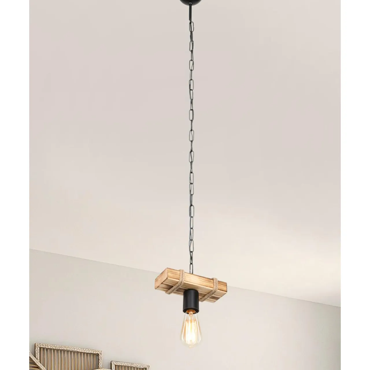 Wysokość lampy można dostosować w zależności od wysokości sufitu. Jej maksymalna długość to 112 cm.
