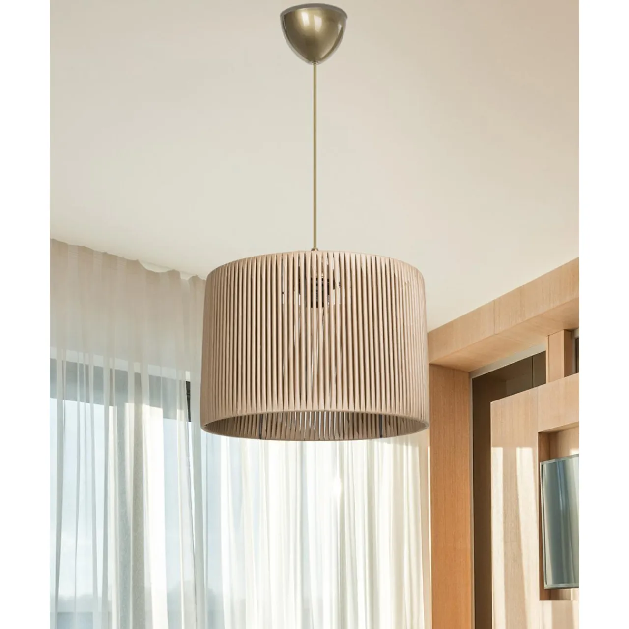 Lampa wisząca ROYA to doskonałe dopełnienie dla wnętrz wypełnionych rattanowymi lub wiklinowymi meblami oraz dodatkami w beżach, brązach i szarościach.