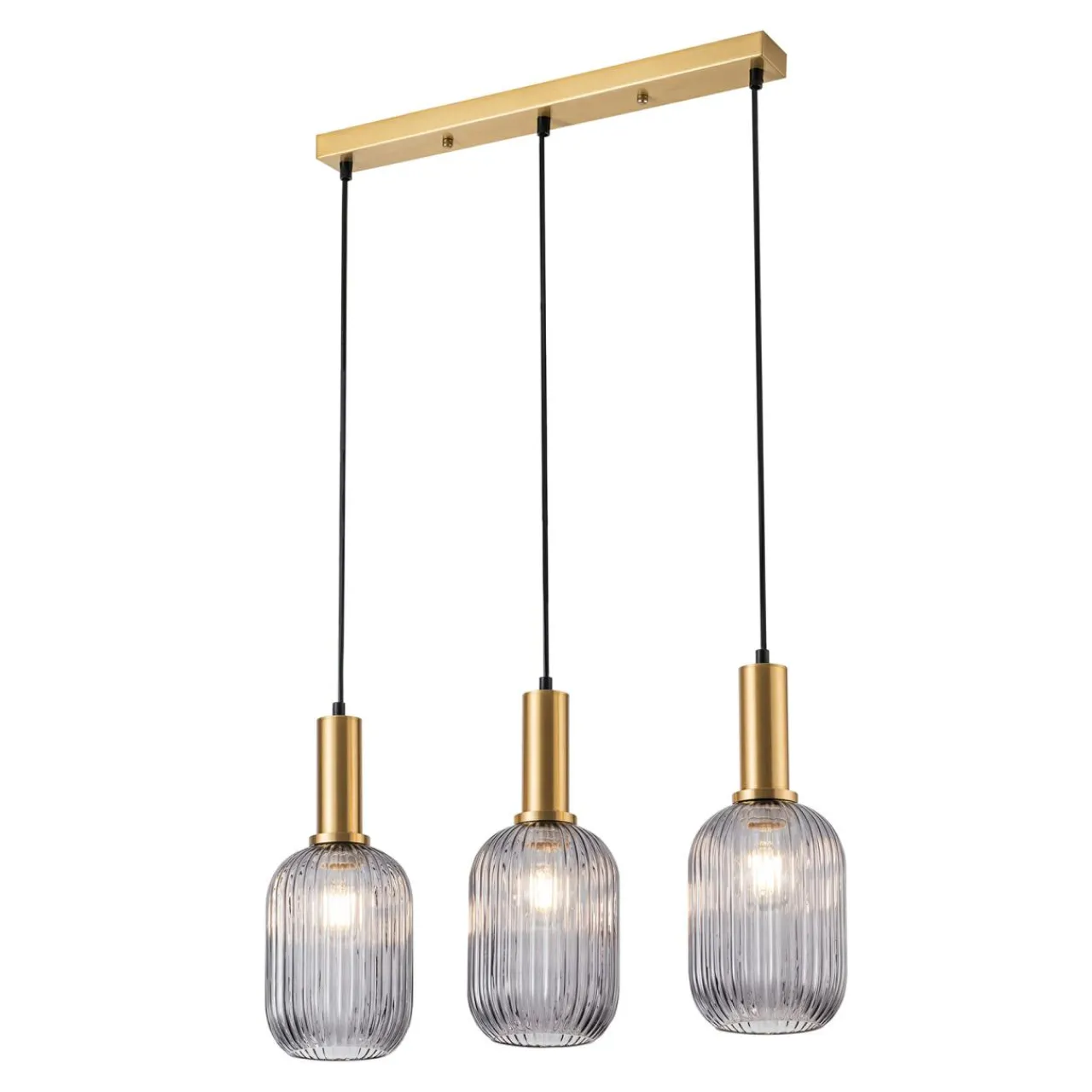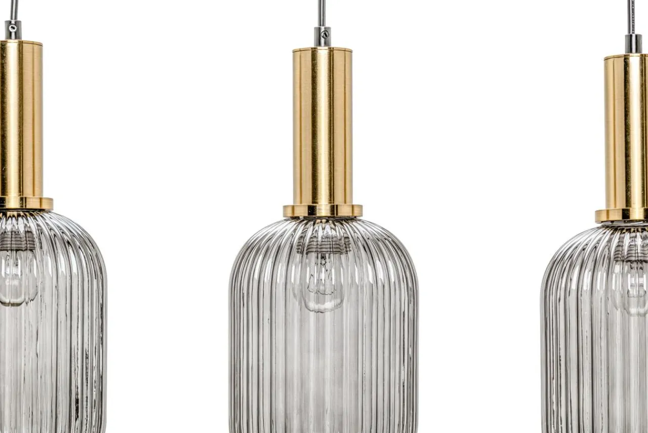 Jej szklane, zdobione prążkami półprzejrzyste klosze z efektem przydymienia stwarzają idealną okazję do wyeksponowania ozdobnych żarówek.