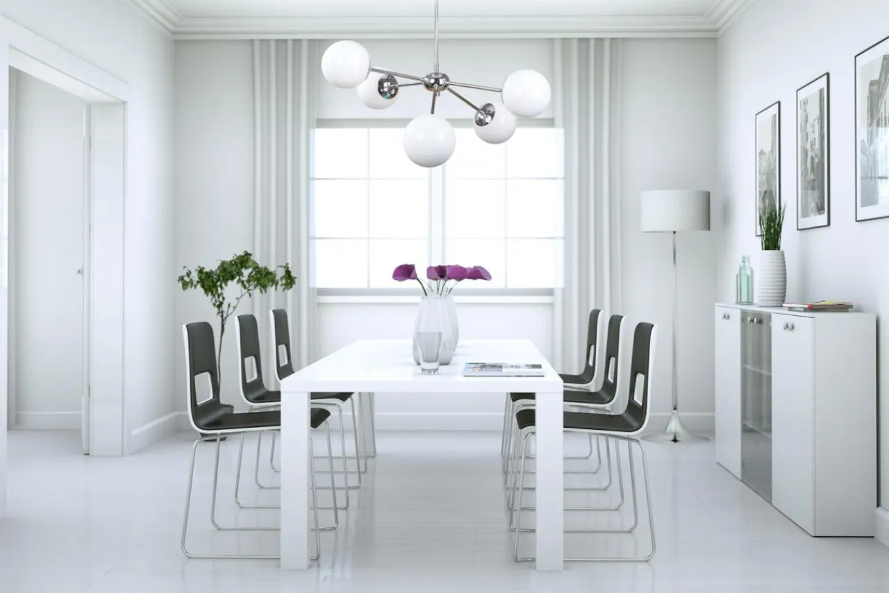 Biały kolor kulistych kloszy w urokliwy sposób łączy się ze chromowanym wykończeniem podstawy, a neutralny design stwarza stwarza dużo możliwości aranżacyjnych.
