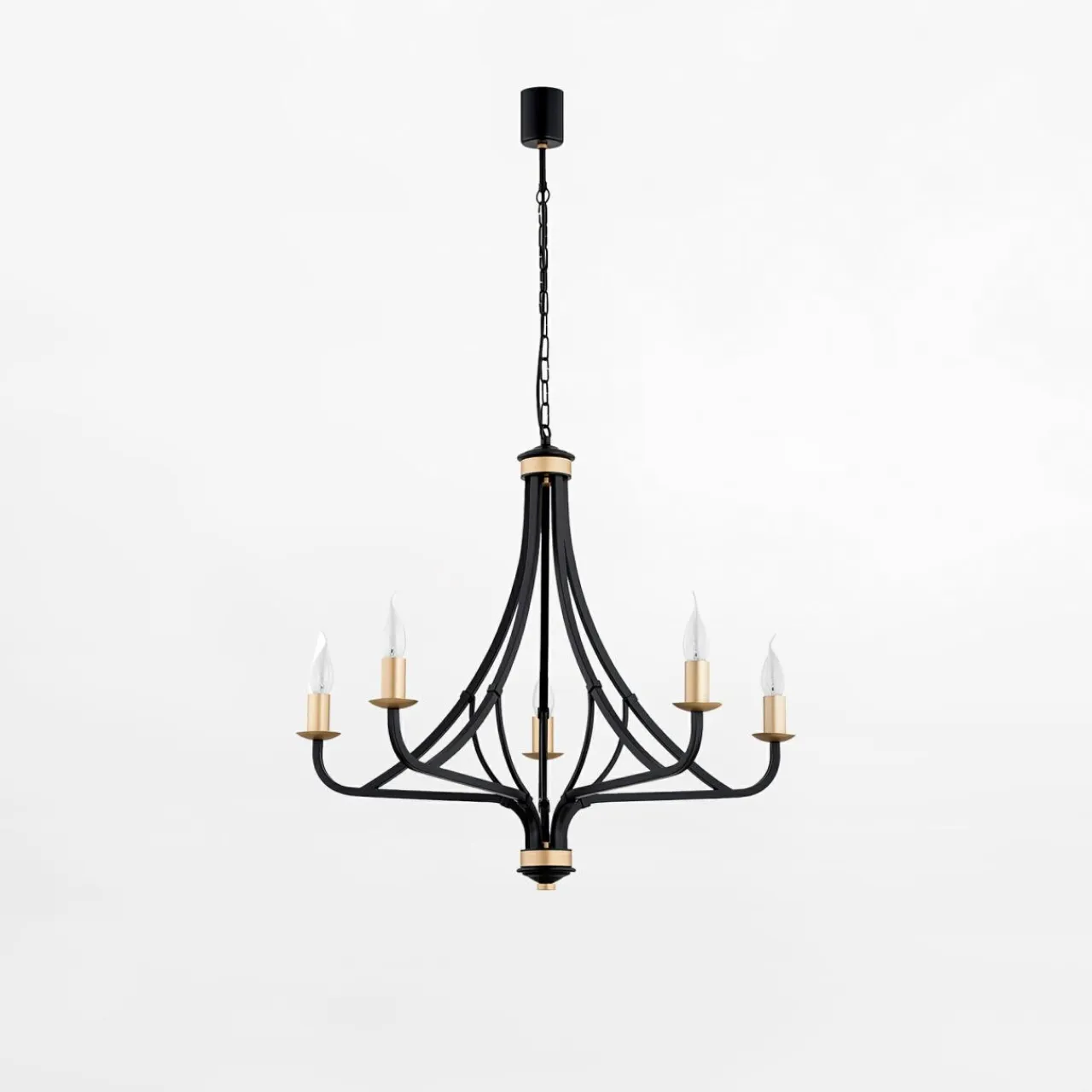 - Posiada na oprawę dla 5 żarówek LED typu E14 o mocy maksymalnej 7W.