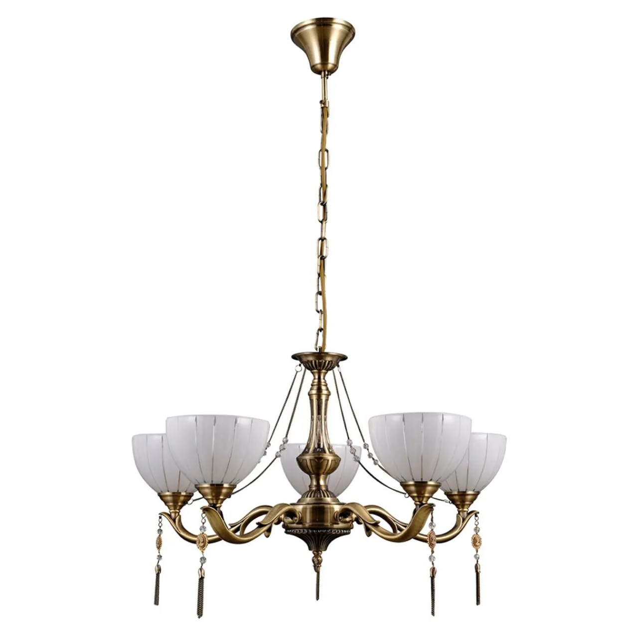 Lampa posiada oprawę dla 5 żarówek typu E27 o mocy maksymalnej 60W.