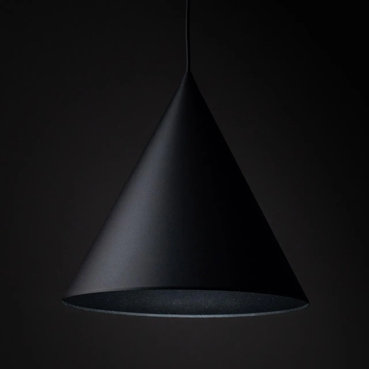 Pojedyncza lampa CONO L posiada regulację wysokości zawieszenia. Jej maksymalna długość wynosi 165 cm.