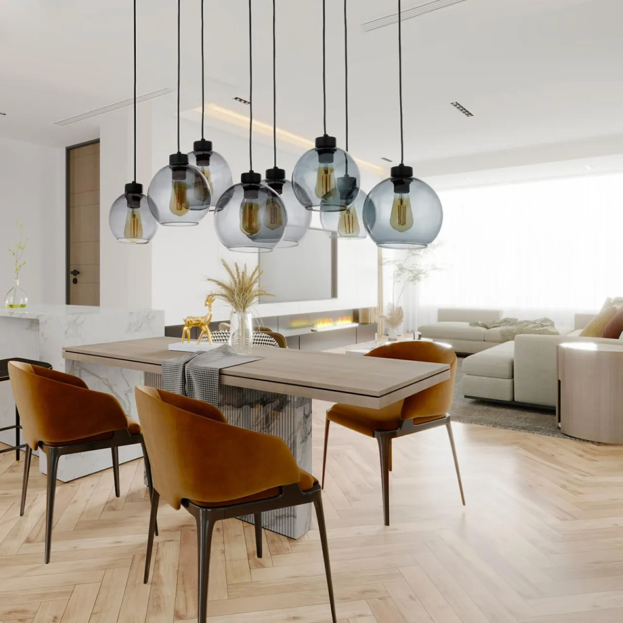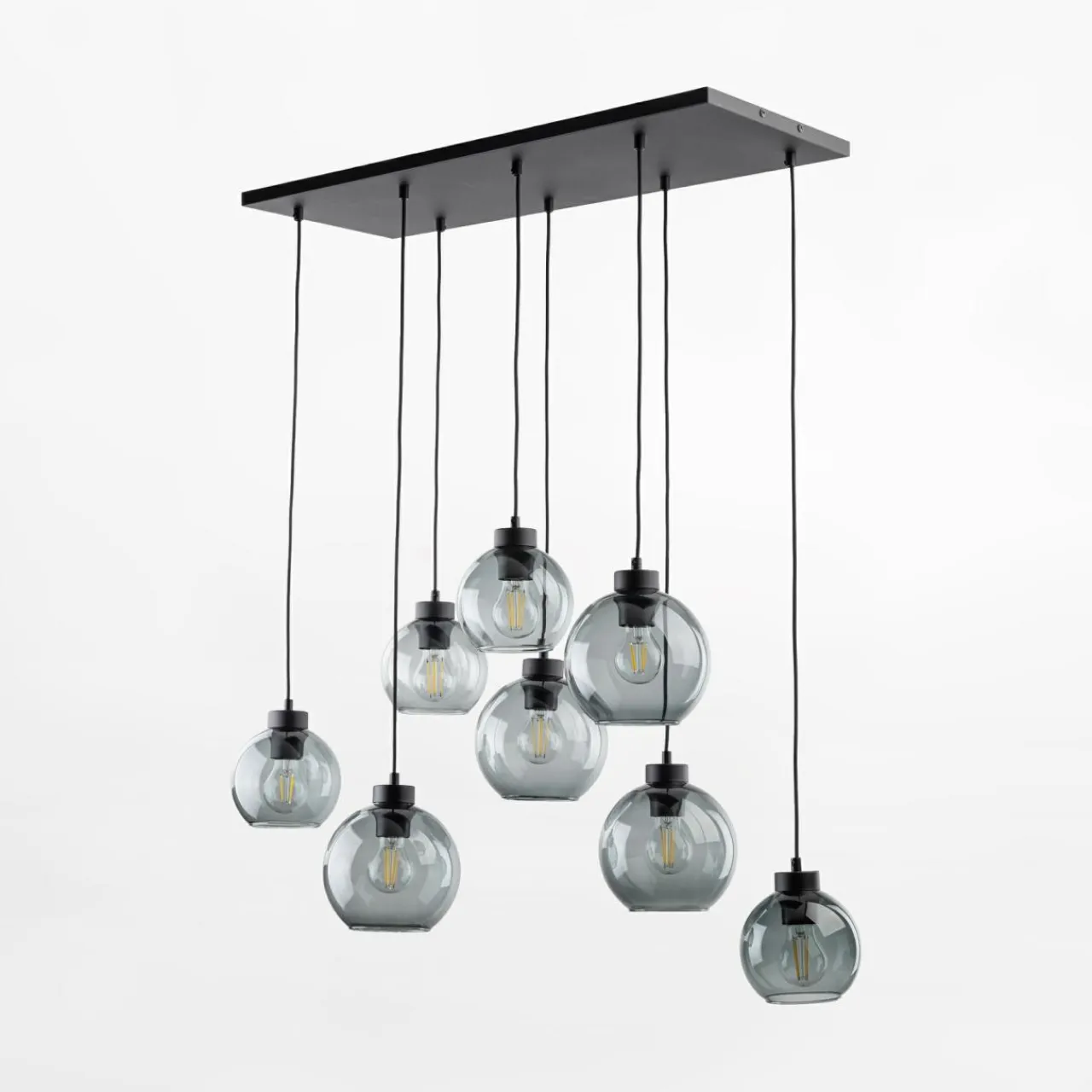 - Posiada oprawę dla 8 żarówek, które są wyeksponowane dzięki przejrzystemu kloszowi. Stwarza to idealną okazję dla pokazania żarówek dekoracyjnych o niecodziennym kształcie.