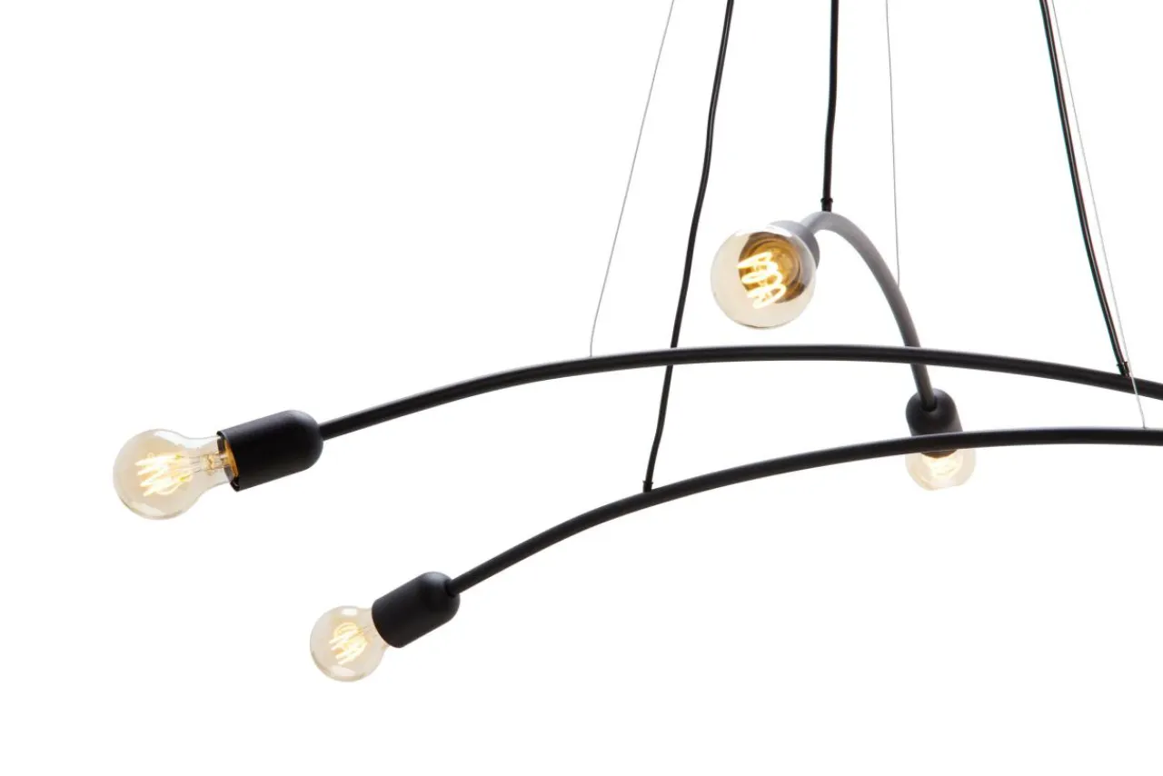 Sześć źródeł światła umiejscowionych koncentrycznie na metalowym stelażu pozwala oświetlić każdy kąt, dzięki czemu jest doskonałym wyborem dla przestronnego wnętrza.