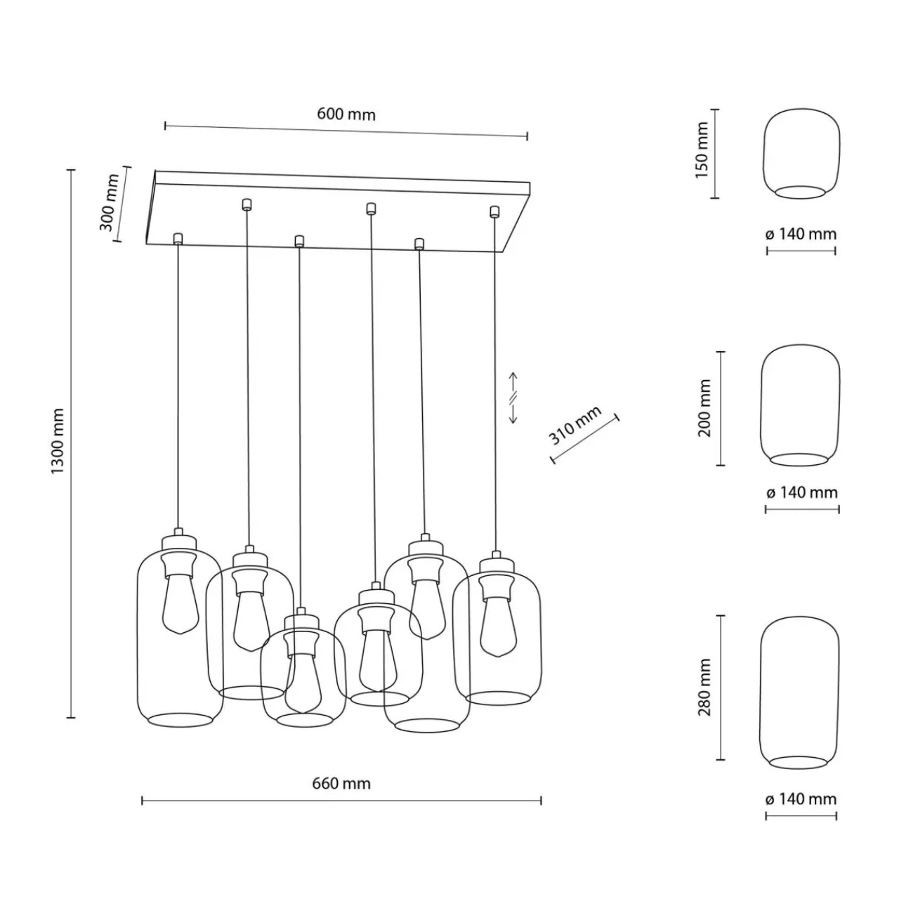 Jej 6 szklanych kloszy, m.in. transparentne, jasnozielone, brązowe – upiększają wizualnie wnętrze, dodając mu elegancji i oryginalności.