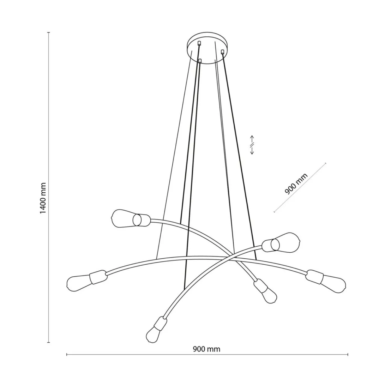 - 6 źródeł światła na metalowym stelażu oświetla każdy kąt, dzięki czemu lampa jest doskonałym wyborem dla przestronnego wnętrza.
