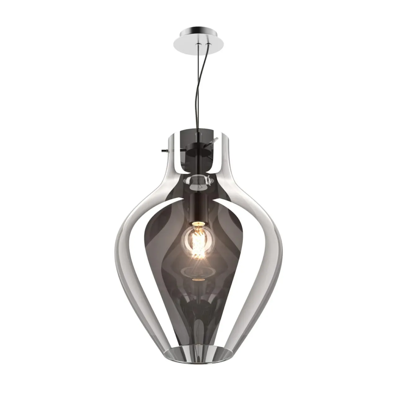 Oryginalny kształt klosza lampy BRESSO przywodzi na myśl antyczną wazę. Ozdoby na jego powierzchni są oszczędne. Ich estetyka opiera się głównie na grze światłem oraz połączeniu elementów metalowych i szklanych.