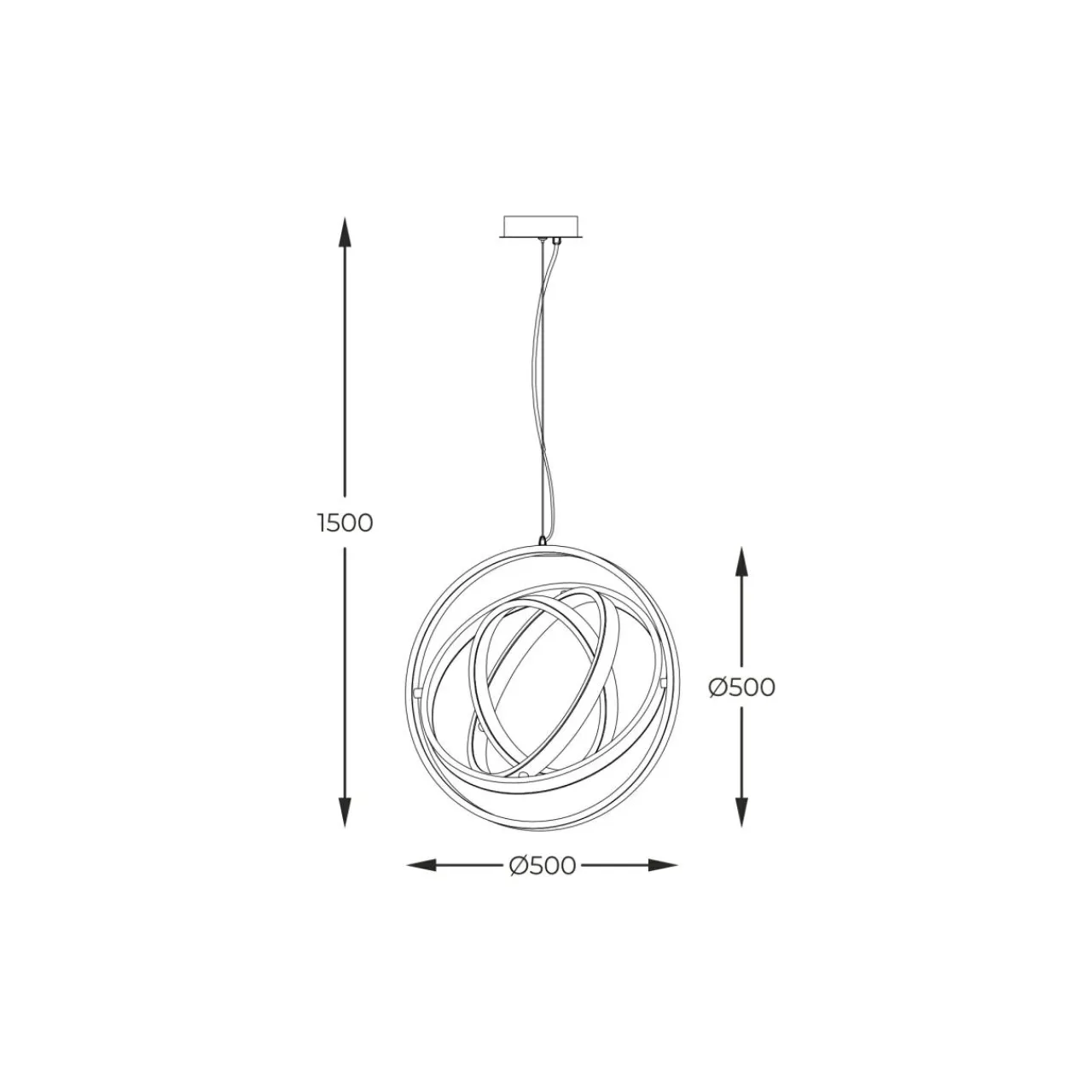 Lampa wisząca TESS idealnie sprawdza się w pomieszczeniach z wysokim sufitem. Przy średnicy 50 cm, jej maksymalna długość zawieszenia wynosi 150 cm.