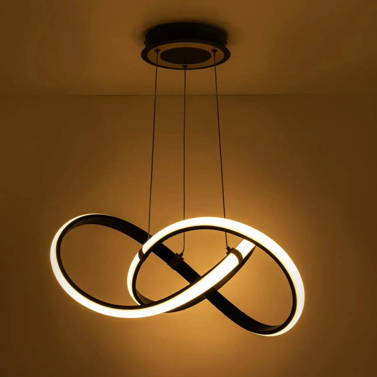 Regulowane zawieszenie lampy idealnie nadaje się do pomieszczeń z wysokim sufitem. Jej maksymalna długość to 150 cm.