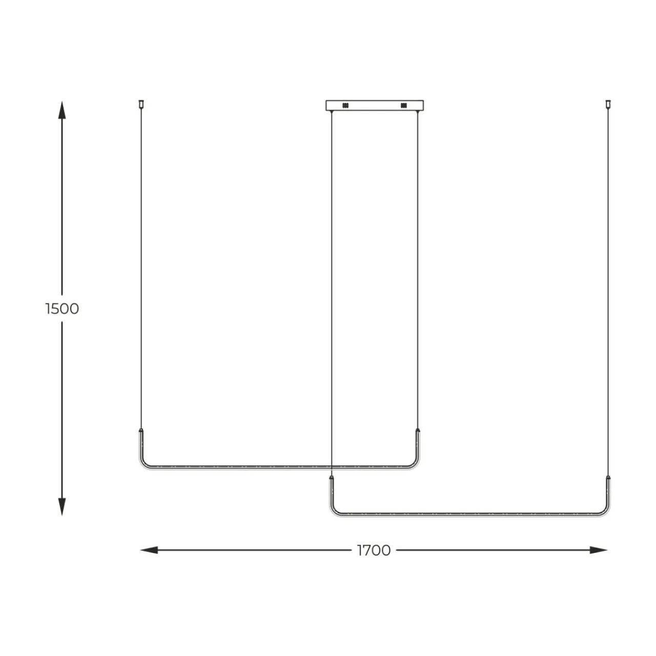 Ma szerokość aż 170 cm. Składa się z 2 podwieszanych metalowych elementów o kształcie listwy z wbudowanym podświetleniem LED.