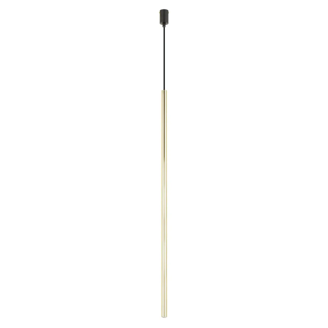Złote wykończenie oraz kształt wąskiej tulei przykuwa wzrok i sam w sobie jest elementem dekoracyjnym. Zestawisz je z oszczędnym w formie meblami opartymi na czerni oraz drewnie.