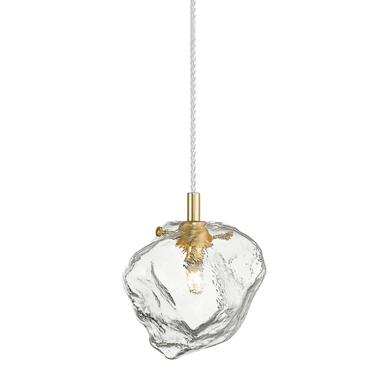 Przeźroczysty szklany klosz przywodzący na myśl fragment skały dodaje kolorytu i urokliwie wygląda w połączeniu z ozdobną żarówką.