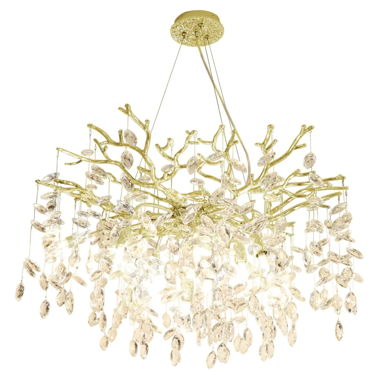 Zawieszona poniżej dekoracja składa się ze splątanych elementów ozdobnych na podobieństwo gałęzi z wykończeniem w złotym kolorze.