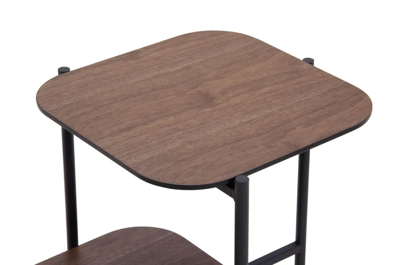 - Ciemny kolor drewna w połączeniu z czarnymi, metalowymi nogami doskonale sprawdzi się w salonie urządzonym w stylu loftowym.