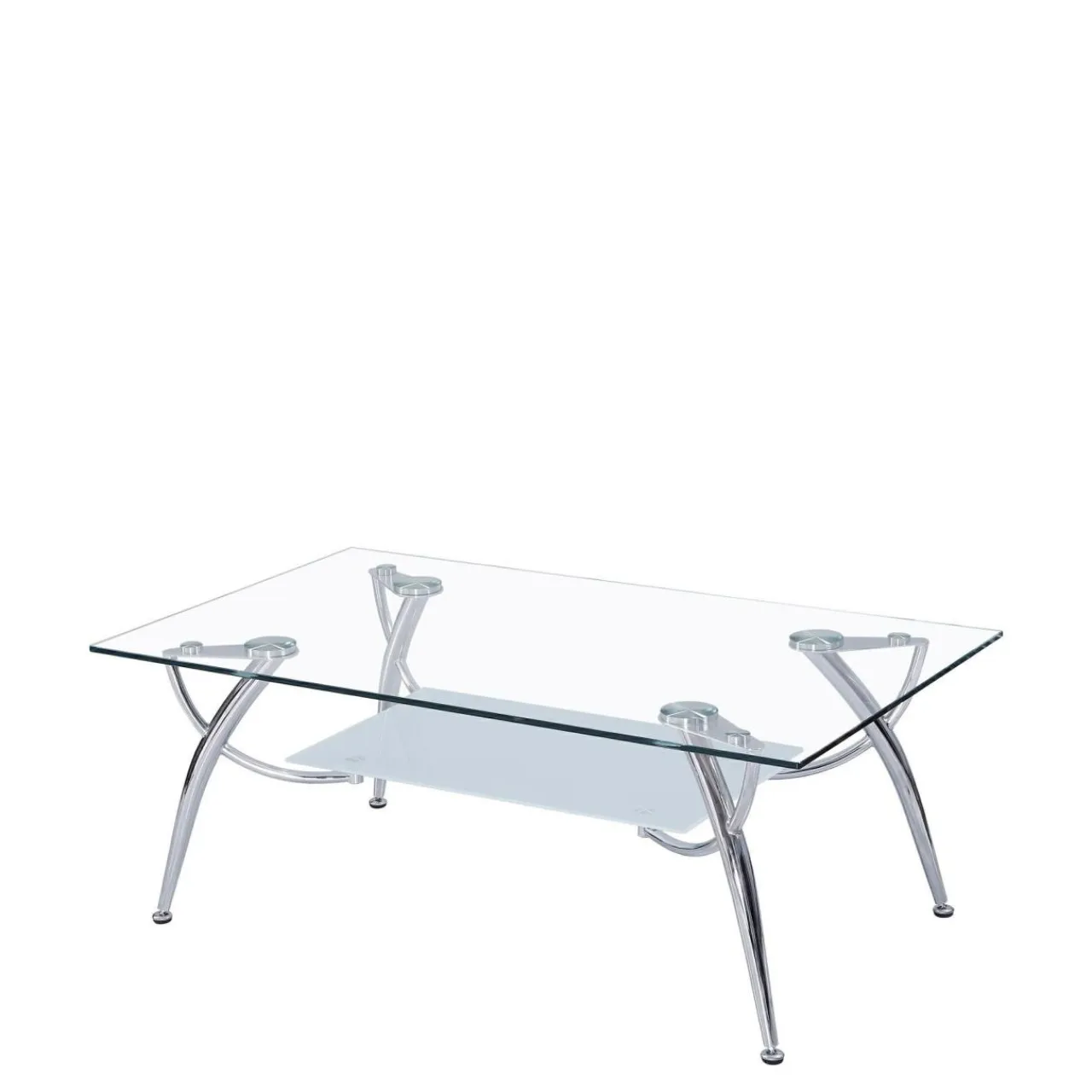 Ława ze szklanym blatem o wspaniałej nowoczesnej stylistyce, doskonała do pokoju dziennego. Jest bardzo funkcjonalna. Posiada półkę, na której możesz przechowywać wszystkie podręczne rzeczy, gdy nie ma miejsca na blacie. Chromowane nogi są stabilnym podparciem.