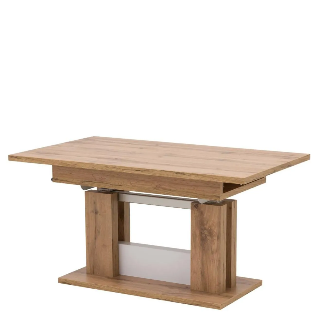 Jeśli wykorzystamy obie wkładki to ława zamienia nam się w szeroką na 170 cm ławę. Przy podniesieniu ławy na wysokość stołu dysponujemy już pełnowymiarowym stołem o wysokości 74 cm.