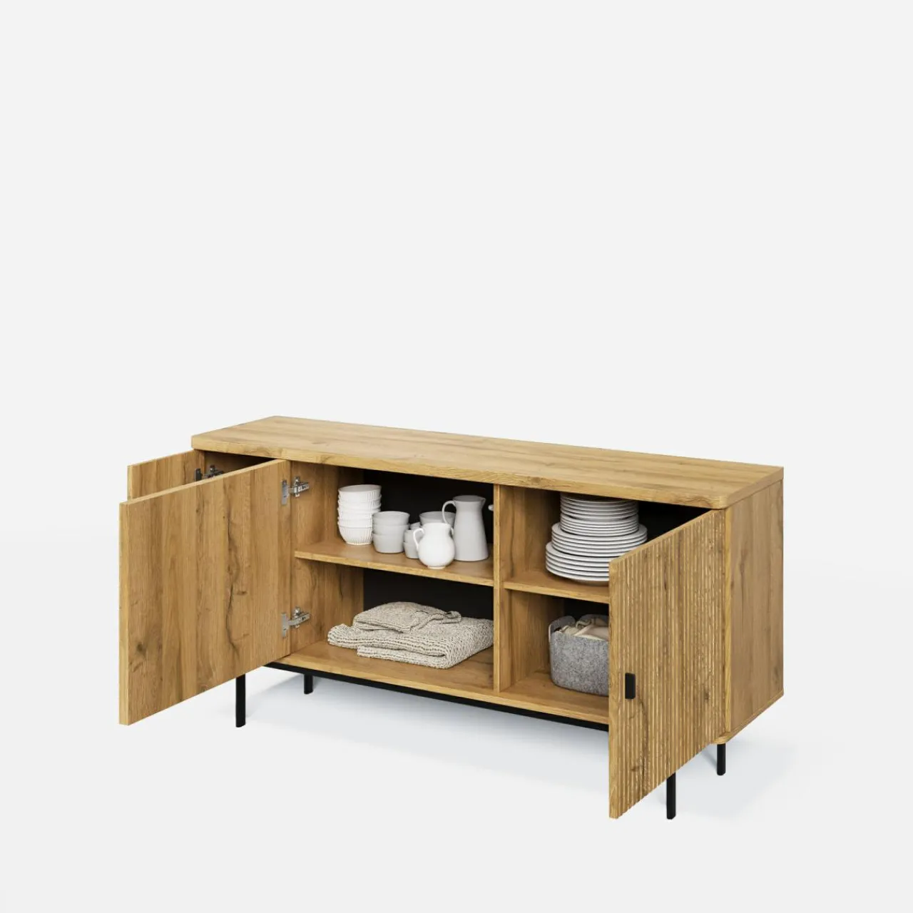 Niska komoda 3-drzwiowa LUCIA to świetny sposób na utrzymanie porządku w salonie. Schowaj rzeczy za drzwiami i ciesz się spokojnym popołudniem w domu.