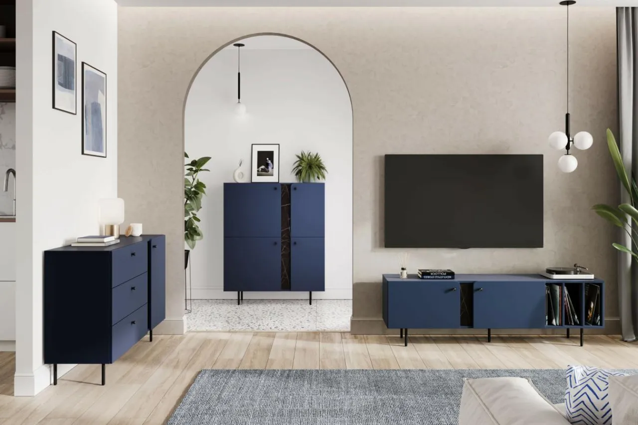 Jeśli lubisz minimalizm, cenisz wolną przestrzeń, a jednak chcesz, by Twoje pomieszczenie miało wyrazisty charakter – granatowa komoda LIV przypadnie Ci do gustu.
