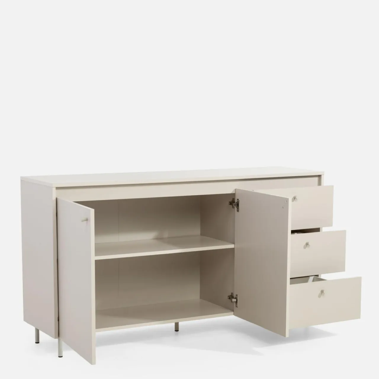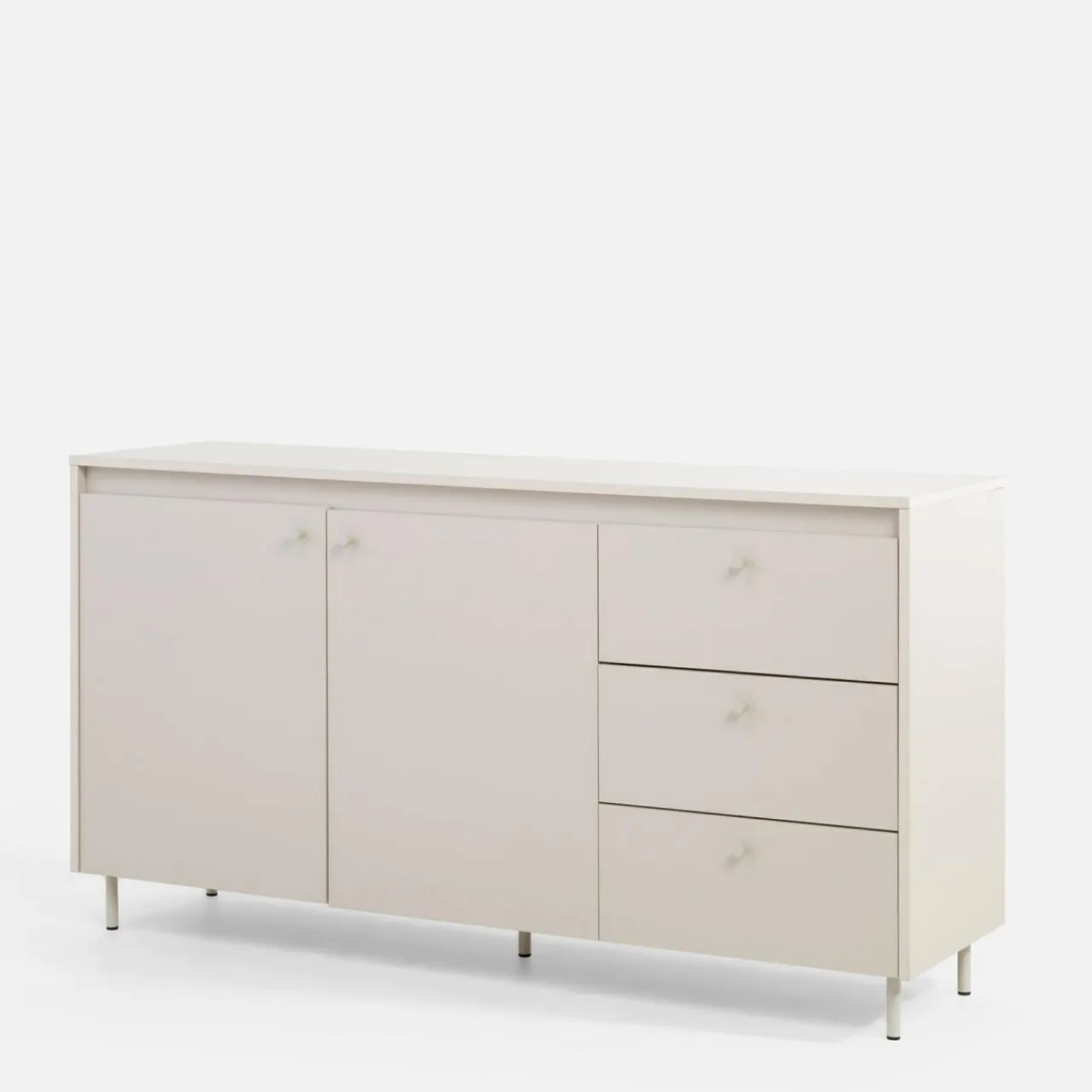 Komoda TORINO w kolorze kaszmir wprowadza subtelną elegancję do wnętrz w stylu skandynawskim lub minimalistycznym. Jej stonowany odcień doskonale współgra z ciepłym drewnem, beżami, szarościami oraz akcentami w kolorze czarnym lub złotym.