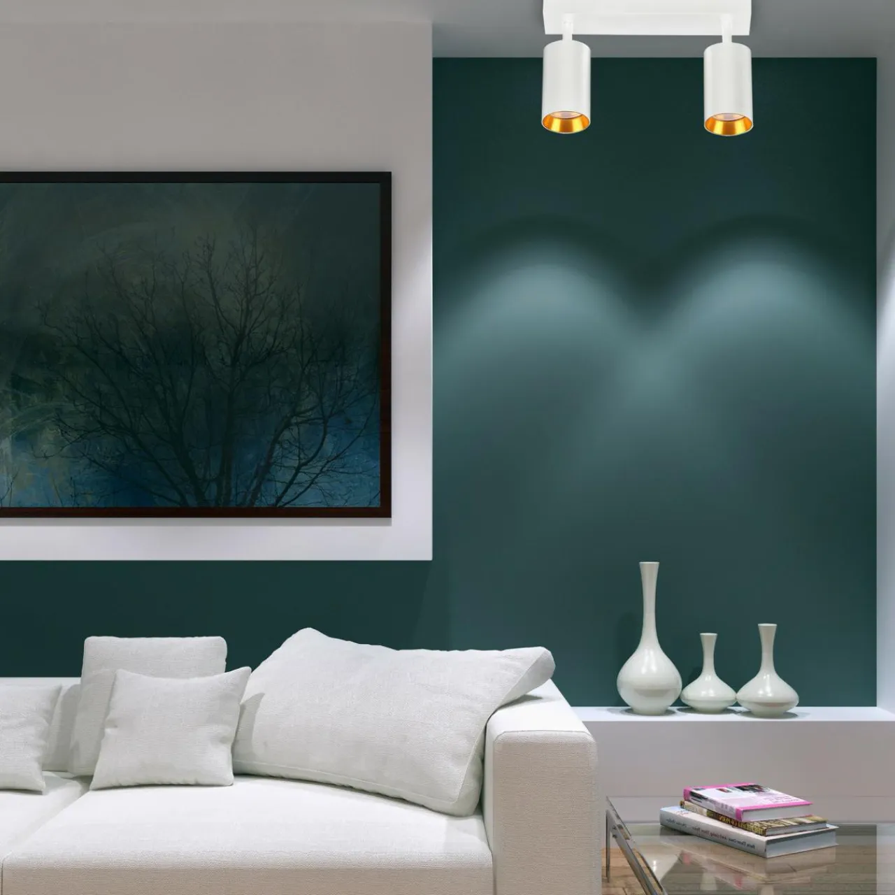 Podstawa i klosz 2-punktowego reflektora MARIBEL zostały wykonane z lekkiego aluminium, możesz go więc zamontować na ścianie lub podwieszanym suficie.